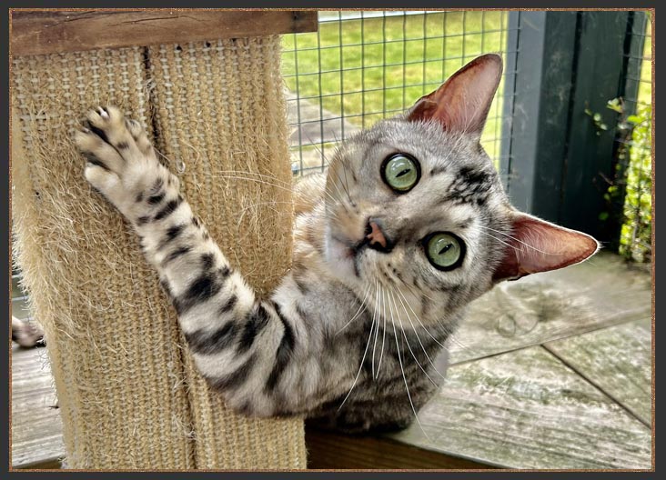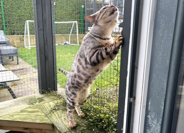 Haja and Tala are strictly indoor cats but they do have access to an outdoor catio and a cat wheel which they both adore. They often run on the wheel together.