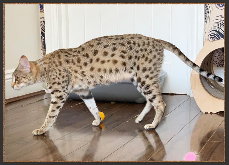 Like her brother Ryder, Lily is long and leggy with beautiful dark golden brown hues and jet black spotting. One trait that I love about Lily is her lovely upright ears.